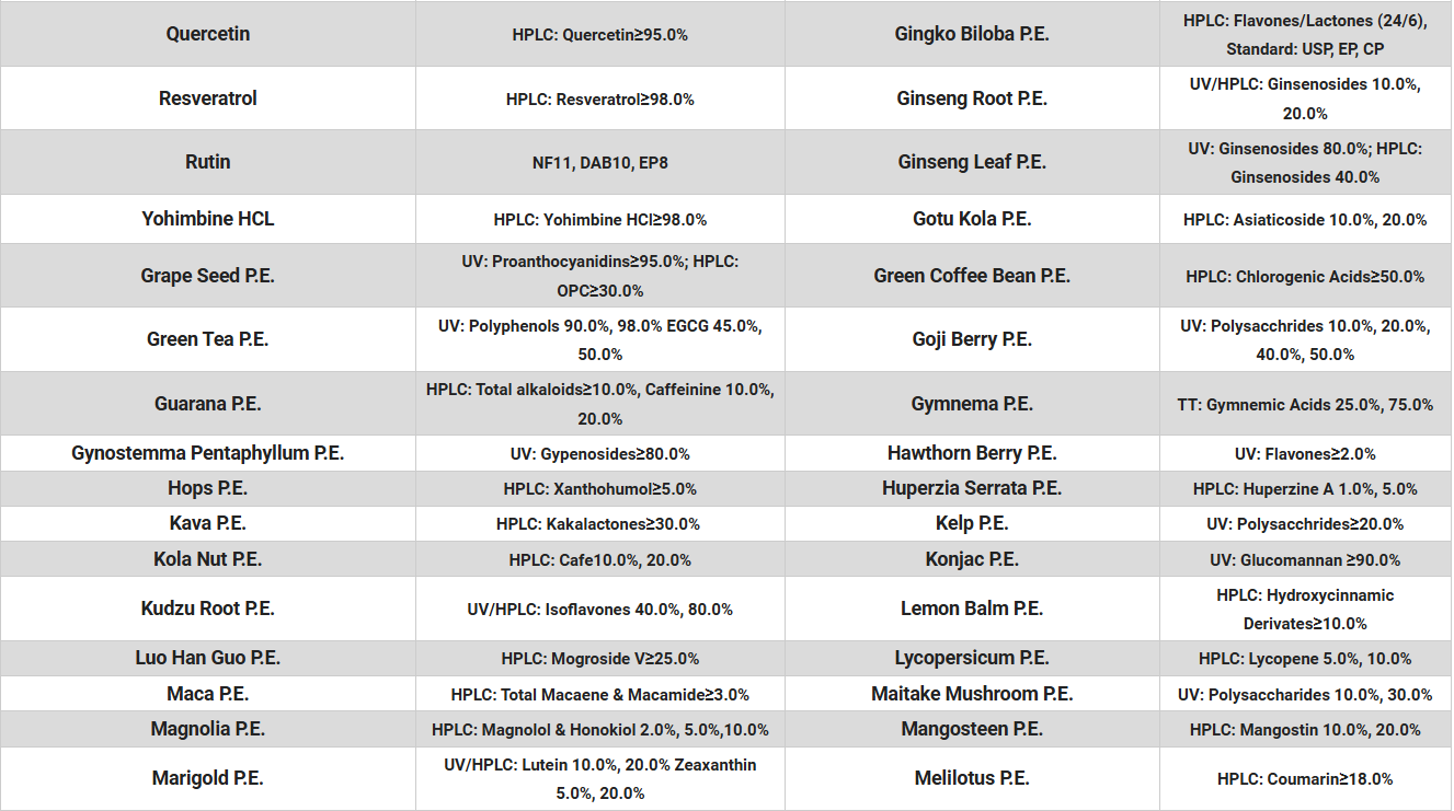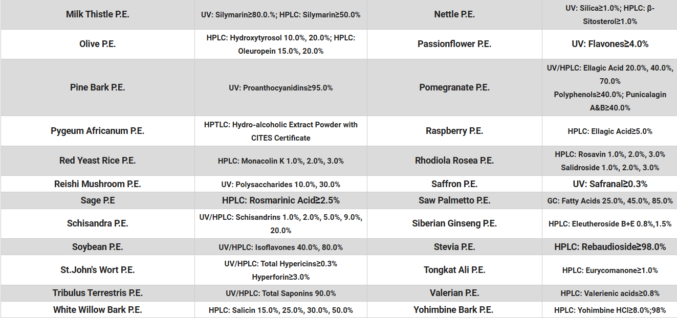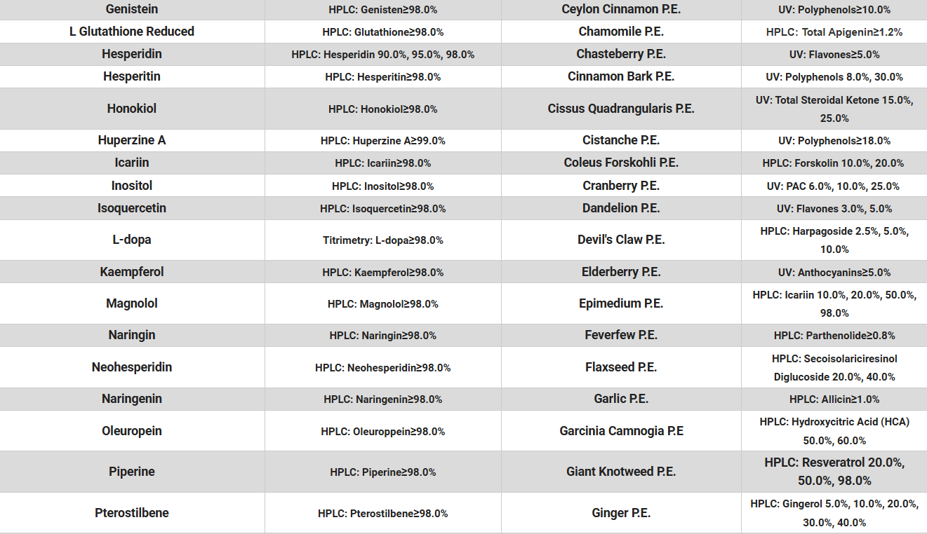 공급가능 원료 리스트/Specification